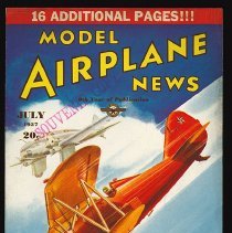 Booklet, contains letter to aeromodelers, space for recording contest winners, autograph pages, advertisements, and cover reads: "16 ADDITIONAL PAGES!!! MODEL AIRPLANE NEWS, JULY 1937, 20 [cent symbol], 9th Year of Publications, Russian Military Pursuit Plane", Stamped: "SOUVENIR COPY". For 10th National Championship Model Airplane Meet, July 7-12, 1937. The 1937 Nats was held July 7 to 12 in Detroit, Michigan. Although some original materi...