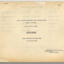 Booklet, results (labeled "Official Records") for various events at the National Championship Model Airplane Meet (Nats), 1937. Based on the condition of the first page, this packet could have had a cover that is now missing. Only first page of results booklet A2025.02.55 has been scanned. The 1937 Nats was held July 7 to 12 in Detroit, Michigan. Although some original material from the 1937 Nats advertises it as the 10th Nats, this Nats...