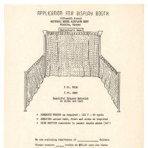 Application for display booth at the "NATIONAL MODEL AIRPLANE MEET" (Nats), Wichita, Kansas, 1946. Listed at bottom left "Return to: R.P. Owinn..." The 1946 Nats was held Thursday, August 29 to Monday, September 2 in Wichita, Kansas. (Registration and meetings on August 29.) Per the official 1946 Nats program, Nats HQ and Indoor Free Flight was at the Wichita Forum, Rise off Water was at Crestview Lake, Radio Control and Control Line was at...
